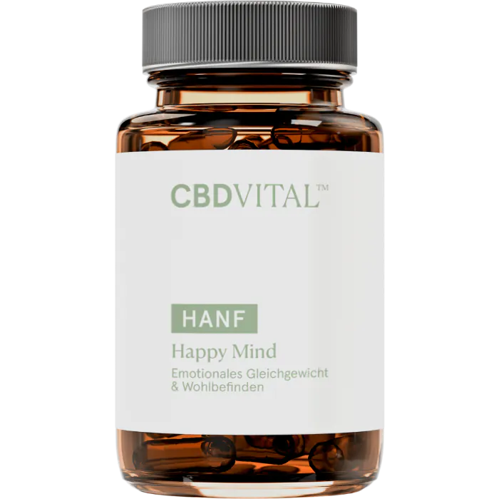 Hanf Happy Mind von CBD VITAL ist eine einzigartige Formel aus ausgewählten Mikronährstoffen und pflanzlichen Inhaltsstoffen. Das synergistische Zusammenspiel zwischen speziellen Aminosäuren, Vitaminen, Spurenelementen sowie Hanfsamenprotein und erlesenen Pflanzenextrakten erfüllt die Voraussetzungen für mehr Leichtigkeit im Alltag. Die Aminosäure L-Tryptophan ist ein Baustoff, der für die körpereigene Bildung von Serotonin benötigt wird. 5-Hydroxytryptophan (5-HTP) fungiert als direkte Vorstufe von Serotonin und wird aus der Schwarzbohne (Griffonia) gewonnen. Die Aminosäure L-Tyrosin ist ein Ausgangsstoff für die aktivierenden Neurotransmitter und sorgt gemeinsam mit Eisen für Power und Elan im CBD VITAL Hanf Happy Mind Komplex. Aktivierte B-Vitamine (ideal dosiert) werden optimal vom Körper aufgenommen und sind wichtig für eine normale Nervenfunktion. Die Wirksamkeit des in den Kapseln enthaltenen Safranextrakts (Saffr‘ Activ®) zum Abbau von Stress und bei leichten seelischen Problemen wurde in mehreren klinischen Studien bestätigt.