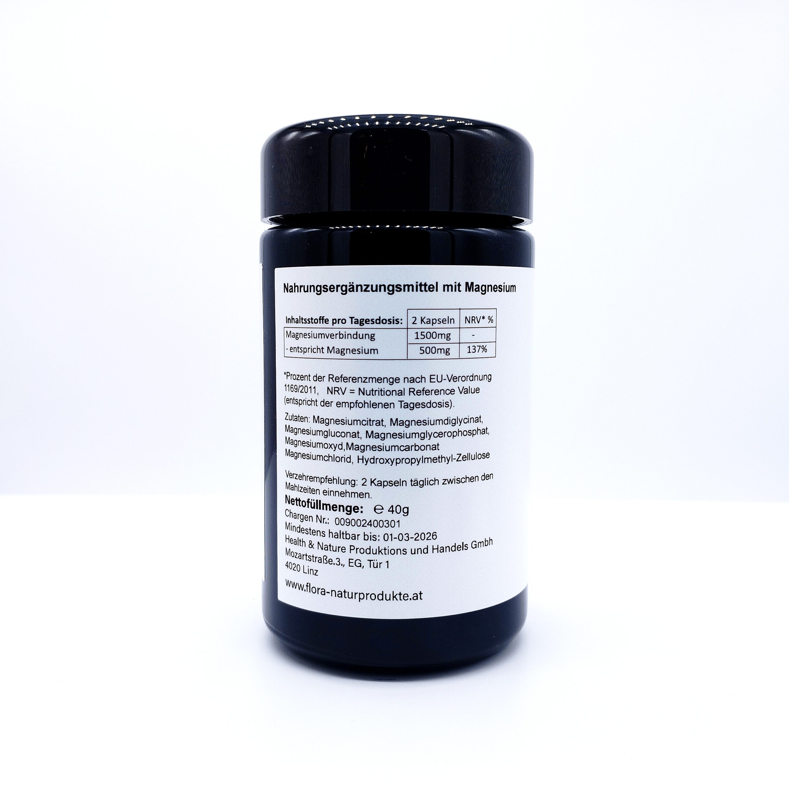 gesamt 1500mg Magnesiumverbindungen (entsprechen 500mg Magnesiumsalze)