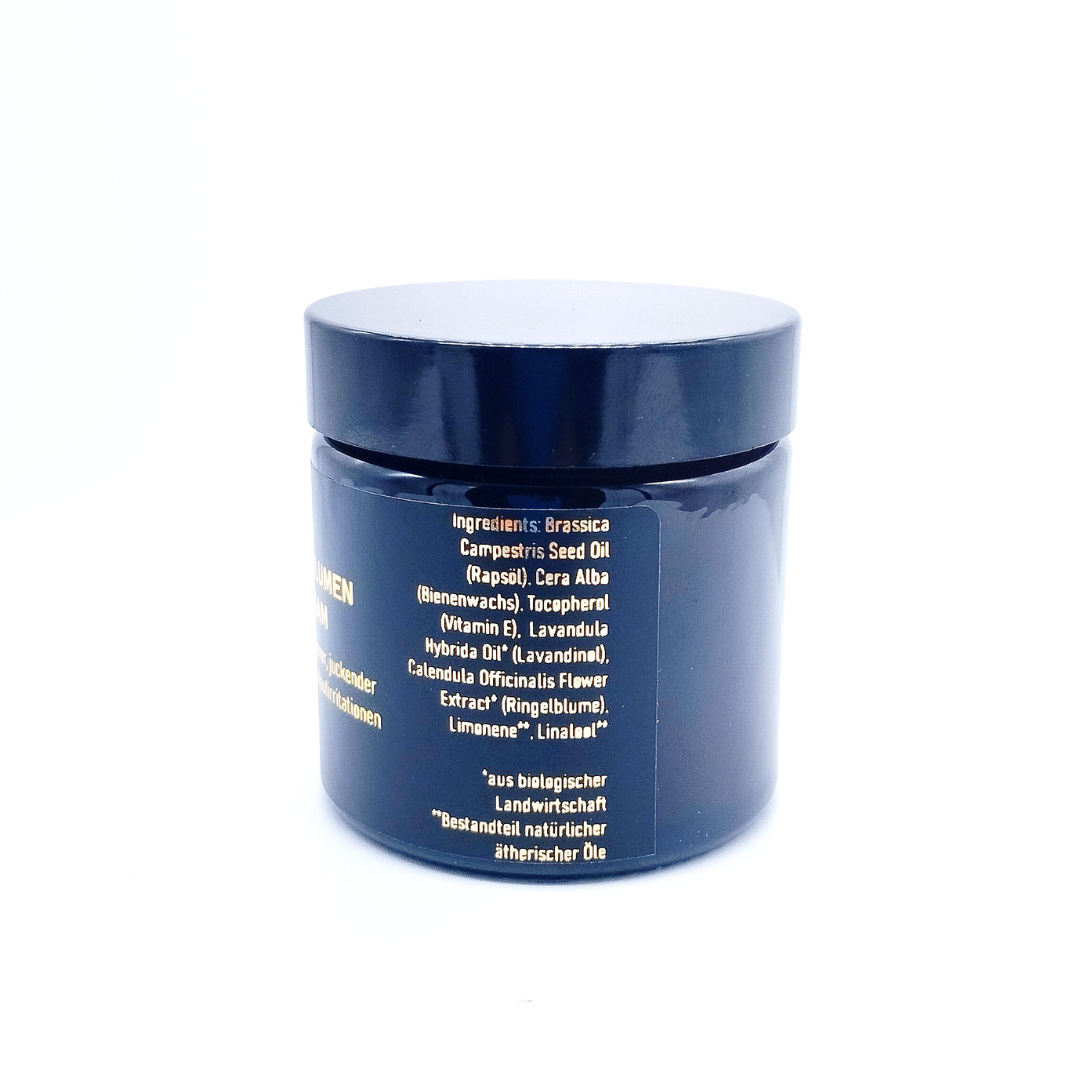 - Zutaten: Ringelblumenextrakt, Bienenwachs, Olivenöl, Sheabutter, Vitamin E